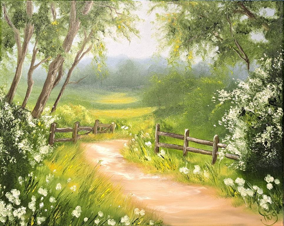 Die Teilnehmenden lernen die sog. Nass-in-Nass-Ölmaltechnik kennen, die gegen Ende des 19. und Anfang des 20. Jahrhunderts erstmalig geschichtlich dokumentiert wurde. Der US-Amerikanische TV-Maler Robert Norman "Bob- Ross®" verfeinerte diese Wet-on-Wet Technique® mit speziell entwickelten Farben und Pinseln, machte die Ölmalerei so hobbytauglich und schuf wundervolle Ölgemälde an nur einen Tag. Ebenso wie in seinen Fernsehsendungen "The Joy of Painting®" gestalten Sie, unter genauer Schritt für Schritt Anleitung einer für diese Technik zertifizierten Mallehrerin, Christine Burkowski, ein Landschafts-Ölgemälde Motiv "Sommertag" im Format: 40x50 cm.